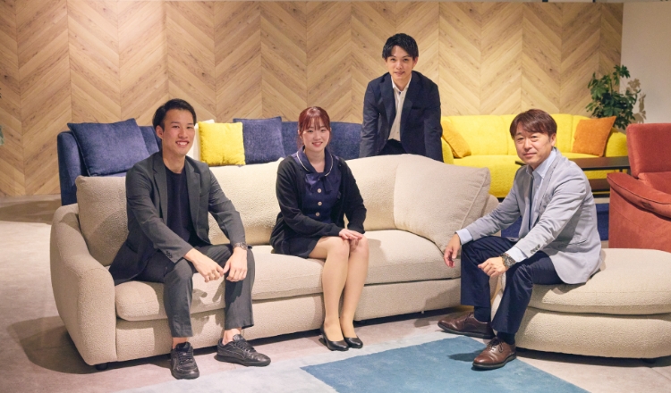 サンコウの商品は、全国の家具販売店に展示され、エンドユーザーに向けて販売されます。また、ネットショップやECサイト『Kagu Buy』にも掲載され、広くお客様に届けられます。このように、商品開発から生産、販売、管理、物流まで、一貫してサンコウ社員が力を合わせて事業を展開しています。
